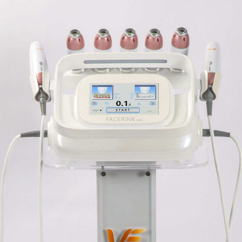 New generation High Intensity Focused Ultrasound, mi.cro¯o focused ultrasound, multifunctional nonsur.gical face lifting, skin tightening and and body contour-ing anti-aging high technology beauty equipment, use fo-cused ultrasound to target the layers of skin just belowthe surface. The ultrasound energy causes the tissue toheat up rapidly.Once the cells in the targeted area reacha certain temperature, they experience cellular damage,which in turn stimulates the cells to produce more colla-gen. Facerink has its own pen applicator which can fix thecurve face line very well and is effective for related wrinkle.
